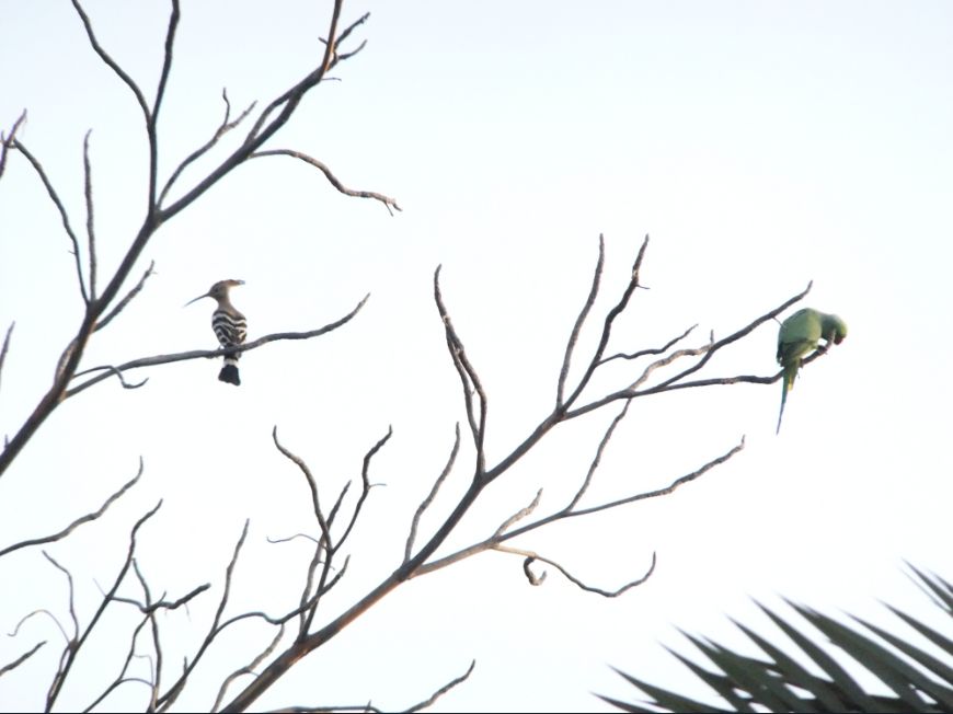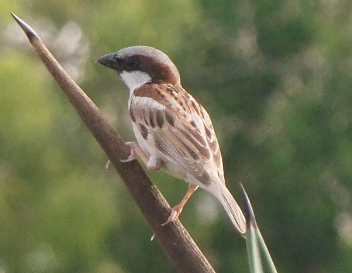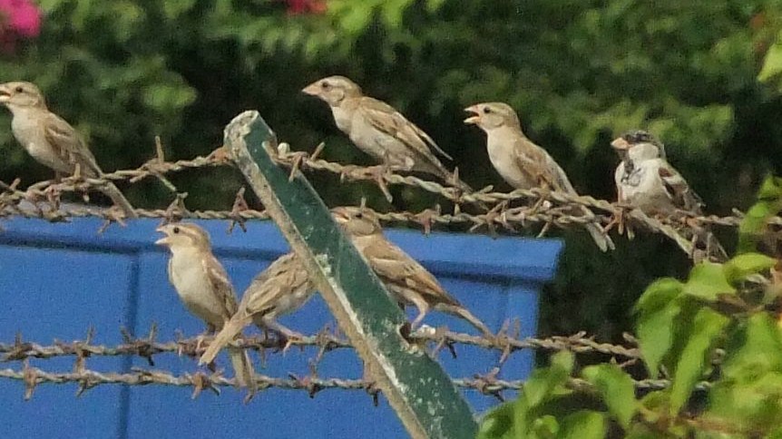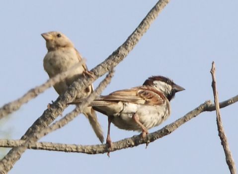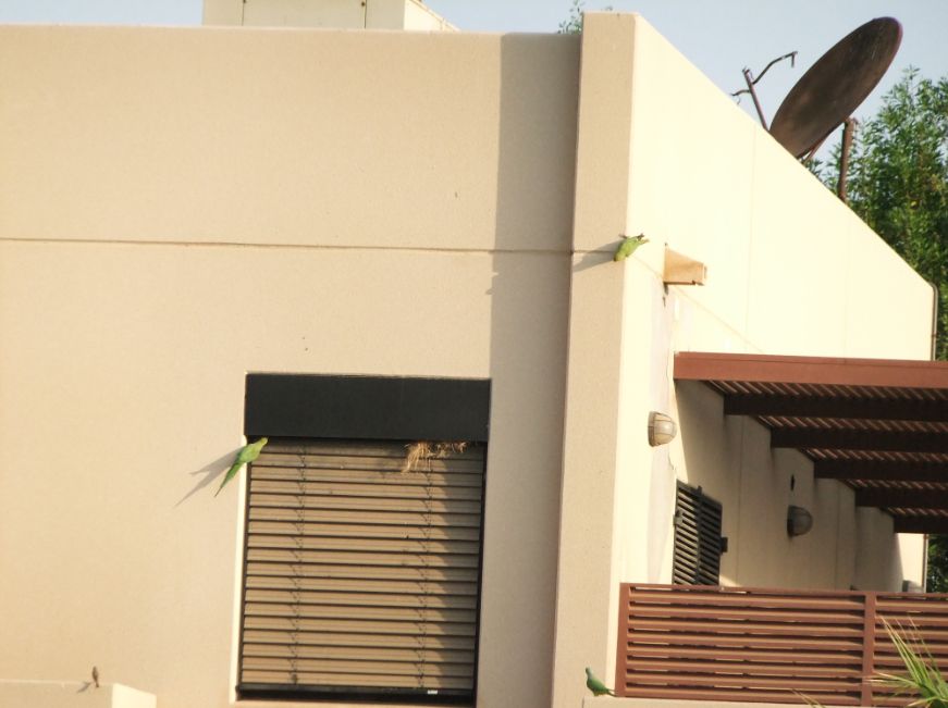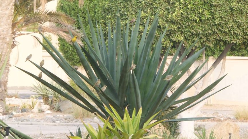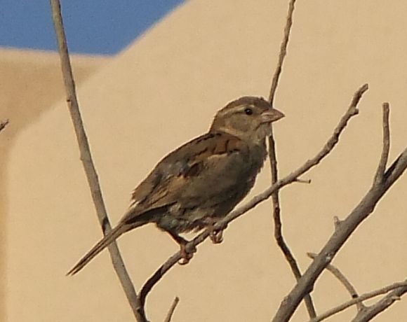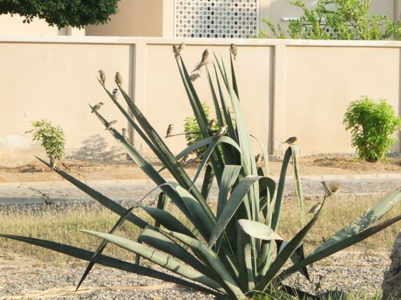 ところで、サウジアラビアにはいます。スズメが沢山。チュンチュン鳴いています。スズメの種類は日本のとは少し違うようです。家雀と言って日本のスズメにある頬のマークがありません。またオスとメスとは別の模様です。 こちらのスズメは大変警戒心が強く、かなり離れたところでもすぐに逃げます。なかなかいい写真が取れませんが、幾つか写真を紹介します。 |