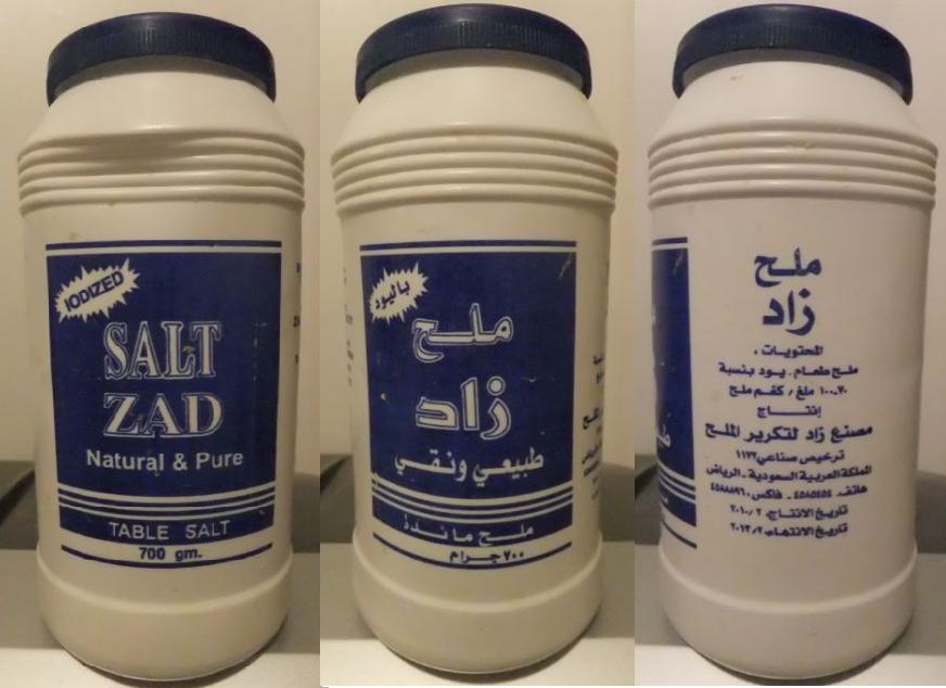 第一弾ですが、チャーハンですが、今日のところは材料の説明(?)までです。 材料 お米:カルフォルニア米 サンホワイト أرز كالروز Calrose Rice 米国産 多分カルフォルニア米 صنوايت SUNWHITE(サンホワイト) (画像をクリックすると大きくなります) アラビア語解説 アラビア語は右から左に読みます。 أرز は お米の事 RICE كالروز は多分 CALROSEをアラビア文字で表記 CALROSEは辞書になかったけどカリフォルニアのことと推定 صن は snでSUN 太陽のこと(アラビア文字には母音はありません。)後に続くので文字の形は少し変わっています。 وايت はwaytでWHITEのこと。 صت と وايت が結合されると文字の形 ن が 英語の小文字のアイ(i)のように変化して صنوايت となります。 袋に表示されている文字では テン2つの代わりに横棒になっています。 ピクルス:きゅうり、大根、ニンジン、ピーマン、カリフラワー等の酢漬け。 Al-Durra foog production co.社製 シリアで生産 Durraのロゴの下に كبيس مشكل とあります。كبيس は問題と言う意味らしいですがここで問題はピンときません。どういう意味か不明です。下にある英語を考えると MIXEDのことかと思われます。 كبيس は漬物のことです。 オリーブオイル: ピクルスと偶然同じメーカーでした。Al-Durra foog production co.社製 シリアで生産されています。 右のラベルの下に Products OF SYRIA と記載されています。値段が張ってありますが500mlで16サウジリヤル。約370円です。 右側のラベルの DURRA の下にアラビア語で الحتويات: زيت زيتون بكر ممتاز とあります。なぜかその下にはFrench訳、Swedish訳、Romanish訳が書かれています。 英語の訳は Ingedients:olive oil exitra virgin です。(フランス語訳と殆ど同じ) ところでRomanich とはどこの言葉なんでしょうか?スイスの公用語のひとつであるロマンシュ語のことでしょうか? الحتويات: زيت زيتون بكر ممتاز الحتويات: ingredient 原料 辞書に載っていません。推測です。 زيت オイル 発音:ザイアタ زيتون オリーブ (オリーブは:زيت オイル + ون 瘤 <-油をためる瘤のようなもの) 発音:ザイトゥーン بكر ヴァージン 発音:ナックル ممتاز エキストラ 発音:モmタージ 醤油:ノンアルコール醤油 キッコウマン 本醸造 特選丸大豆しょうゆ 醤油はキッコーマンの物を使っています。サウジアラビアでもキッコウマン商品はしばしば見かけます。この醤油は日本から持ち込んだものです。醤油にもお酒が入っているものが多いですね。しかしサウジアラビアでは醤油などに少量含まれるアルコールもご法度。ノンアルコール醤油を選んで持ってきました。 醤油はアラビア語で صلصة الصويا 発音は ソルソッタ ソゥォイア 大豆のソースという意味らし。 余談ですがキッコーマンは亀甲萬で、亀の甲羅のデザインの中に萬(万)の字が入っています。カメは万年のごろ合わせの意味もあるようです。 塩:ZAD SALT REFINERY社製 サウジアラビア リヤド やっとサウジアラビア産の食材が登場しました。 ヨウ素強化の食卓塩です。 inonized Salt ZAD Natural & Pure TABLE SALT 700mg 醤油の項: 以下後日に続く <借り置き> 醤油 塩 タカの爪 水 たまご ご飯をお米500グラムに水900グラム(900ml)加え炊飯器で炊きました。小分けしラップに包み冷凍室で保管しています。今回は冷凍ご飯を電子レンジで解凍して用いました。 |