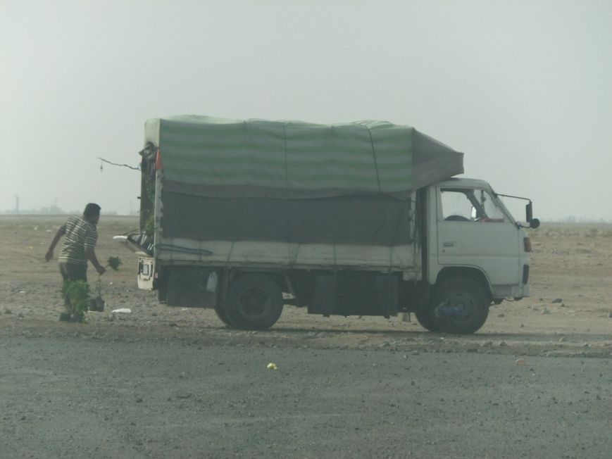 いい天気だ って言ってます。そうサウジアラビアでは雨模様はいい天気なのです。雨が降るとみんな喜びます。 でもジェッダ(紅海岸一の大都市、サウジで首都リヤドに次ぐ大都市)では様子が違います。2年連続大洪水に見舞われたので、トラウマになっているのか少し雨が降るとパニックだって言ってました。 |