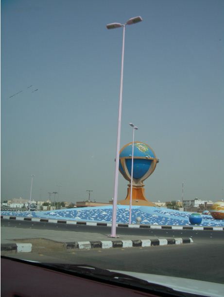 郊外の一般道路は比較的立派である。通勤に使っている道路は片側2車線、直線部分が多いがカーブが何か所かある。カーブにはカントが切ってありスピードを落とさずに走り抜けられる。制限速度は100km/h日本の高速道路並みである。 片道一車線の道路もあり、その道にはライトがない。夜走るのは怖そうに感じる。 町間を結ぶ一般道(旧道)は郊外部分は片側2車線あり高速並みである。こちらも制限速度は100km/h。ただし片側一車線になったり、道路の状況も悪くなったり変化に富んでおり、すべての範囲で高速並みと言うわけではない。 制限速度は郊外のいい道だと100km/hであるが、ジェッダには110kmのところもある。高速道路の延長部分と考えればいいのだろうか?信号はなく、交差点は立体交差である。 建設中の道がある。途中までアスファルトが敷かれているが目的地の半分ぐらいでアスファルトが途切れる。それでも車は砂埃を巻き上げながら走っている。当然電燈はなく、周りに家も何もない土獏の真ん中を一直線に横切るだけであるので、夜走るのはそうとう怖そうである。 土獏の中には無数に車が通った跡がある。一度同乗したした車が土獏の中で方向を失った。周りは完全に荒れ果てた土。西に行けば海が、東や南に行けば道路があることが分かっていたので怖さはなく、土獏(砂漠)の中で道に迷うという体験ができ面白かった。結局見事に出発点に戻った。道に迷うと円を描くと言われるが、まさにそのようになった。 土獏で迷子 |