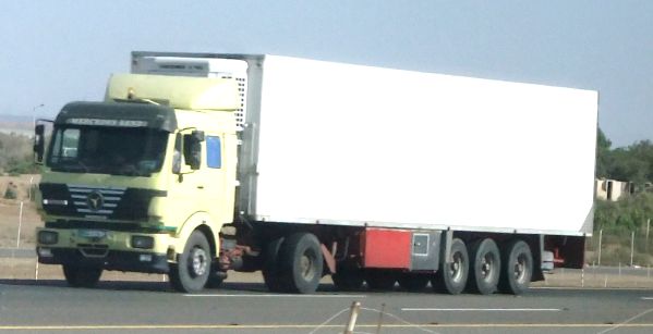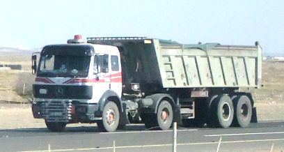 でも乗用車じゃありません。トラックです。乗用車はもちろんベンツもありますが日本の乗用車が多いです。小型のピックアップトラックはトヨタか三菱が多いです。インドのタタのトラックも良く見かけます。でも大型トラックはほとんどベンツ! |