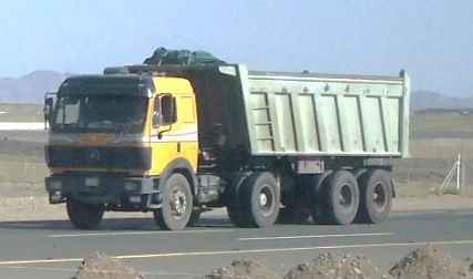 でも乗用車じゃありません。トラックです。乗用車はもちろんベンツもありますが日本の乗用車が多いです。小型のピックアップトラックはトヨタか三菱が多いです。インドのタタのトラックも良く見かけます。でも大型トラックはほとんどベンツ!