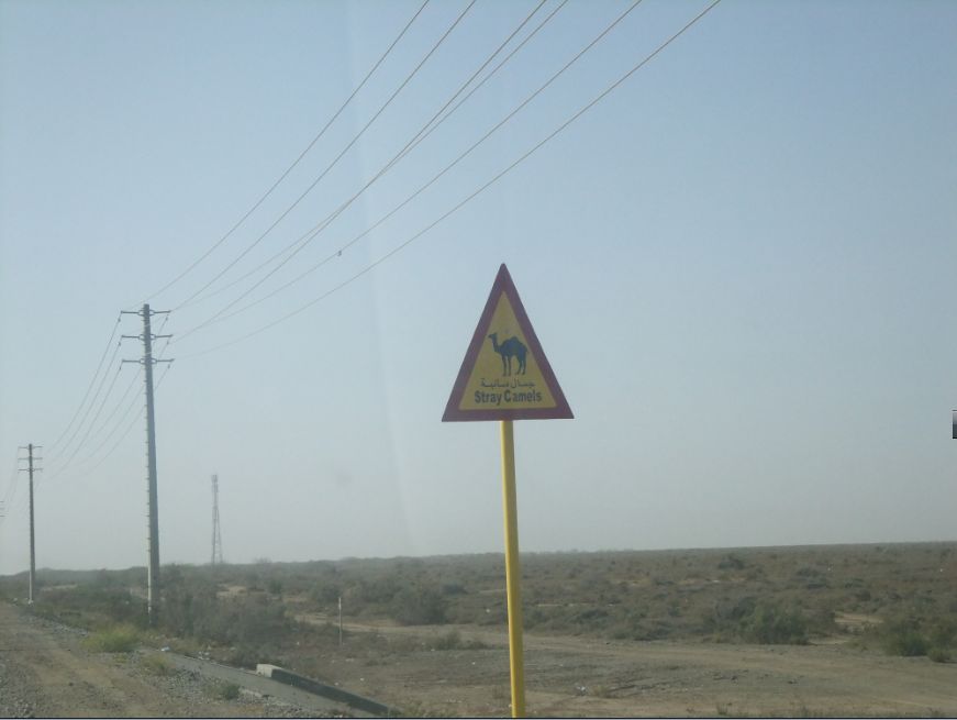 ラクダには注意しましょう。実際に昨年このあたりで2件ラクダとの衝突事故があり、1件は人が亡くなっています。私もこの道で何回かラクダを見ました。昨年の事故で、このあたりにはラクダを連れてこないよう指導がされているかもしれません。ラクダは基本的に家畜で全て所有者がいます。ただ所有者のもとを離れのらのらしているのもいるようです。(夜は家に帰るんでしょうけど)
