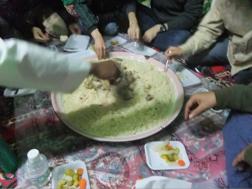 部屋の中の会場です。絨毯の上にビニールシートが敷かれます。一つのシートに一つのお皿がのります。 PR |