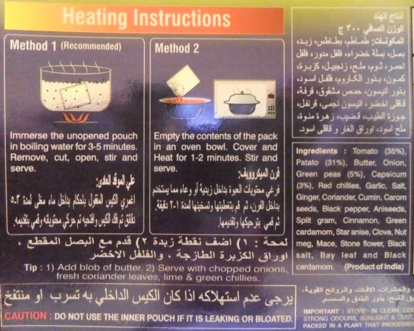 今回は GitsのReady Mealsシリーズ PAU BHAJI です。残念ながらサウジアラビアの食べ物ではありません。インドの食べ物です。サウジアラビアや中東には外国人労働者がすごく多くて、インド人も極めて多数働いています。このためアラビア語仕様のインド料理のインスタント食品が多数売られています。
