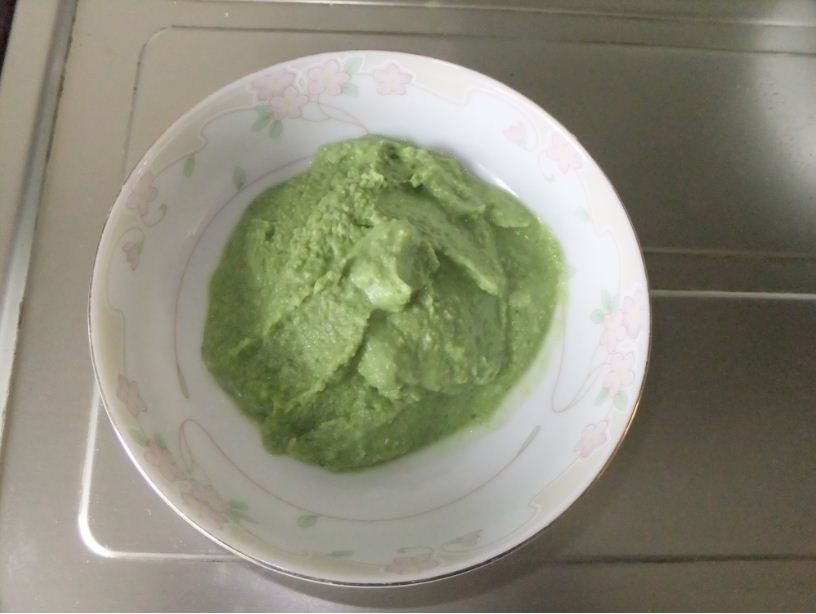 50mlの水 手順 材料全部をフードプロセッサーに入れハイスピードで混ぜる。いちど止めてふちについているものを中に入れて全体がスムースになるよう混合を続ける。 ひよこ豆 ひよこ豆フムス 見た目が固そうです。 大豆ムスフ(フムスもどき) グリンピースフムス ざるで漉すところで皮を除いた。 見た目はきれいなものができました。 ナスのフムス(?) 手順 少し緩めになりました。 |