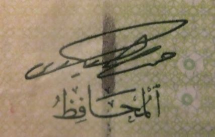 紙幣にはアラビア語で何か書いてあります。なんて書いてあるのか調べてみましたが、分るものもあれば分らない物もある。分ったものだけ紹介します。 どの紙幣にも共通して表の中央上に と記載されています。これは مؤسسة النقد العربي السعودي でサウジアラビア通貨庁 です。 庁にあたる مؤسسة の最後の文字 ة はターマルプータといいます。丸くなった ター(t) と言う意味です。独立形と語尾の形では少し違います。お札には ت と書かれています。これは丸くない普通のター(ت)です。メインの文字のほかに補助記号みたいなものがいっぱいついていますが良くわかりません。 1リヤル紙幣の表の中央下少し右寄りに、 ريال واحد リヤル イチ(1リヤル) 他のお札は数字が先に来ています。例えば 10リヤルだと عشرة ريالات リヤル(ريال)の後ろに ات が付いていますが良くわかりません。 表面左の少し上側に とありますがこれはお札のナンバーです。右側に縦に赤い文字で書かれた に対応します。見比べると英語の E に似た字が4、数字の7を逆にしたようなのが2、oが5などと分ります。1と9はアラビアのアラビア数字も、日本で使っているアラビア数字もほぼ同じ形をしています。 表面下段左側に、 とありますが、これは発行された年です。1428年発行です。もちろんヒジュラ歴。西暦は裏面に、2007と記載されています。 上に書かれているのはすでにサウジアラビア通貨庁であることは紹介しました。 その下に小さな字で一杯書かれています。これははなからギブアップ。しらべませんでした。 表側右寄りの下の方にある 上はサイン? 下は多分 وزير الاليّة 直訳すると大臣機構 良くわかりません。 どの紙幣(旧紙幣、新紙幣、記念紙幣)にも記載されています。 表側下の左寄りにあるのはサインと文字? これも、上段にサインのようなもの、下段に文字があります。この文字が الحافظ だとしたら、キーパー、看守、番人と言うような訳が載っていました。 文字はどのお札も同じですが、サインは2007年までのものと、手元にあった2009年発行の50リヤル新札、100リヤル新札ではサインが変わっています。 http://upload.wikimedia.org/wikipedia/en/9/98/Saudi_Riyal_5th_Domination.jpg に掲載されている2007年発行の50新リヤル、100新リヤル札のサインは古いままなので、恐らく番人(?監督者、責任者?)がこの間で変わったんでしょう。 ここにきて少し分りました。この2つの項は単にサイン欄で、上にサイン、下に肩書なんですね。サウジアラビアの(日本以外の?)サイン文化をすっかり忘れていました。 1リヤル紙幣の表のまん中にあるこれは何?旧1リヤル紙幣にもあります。調べてみましたが分りません。 分りました。最初のイスラムディナールコイン(イスラム諸国で使われていた4.25グラムの金貨。)の写真です。 捕捉 リヤルはサウジリヤルのほかにカタールリヤル、オマーンリヤルなどが有ります。 手元に1カタールリヤル紙幣がありました。これを見ると、サウジリヤルと同じように大臣の署名と、番人の署名がありました。 |
