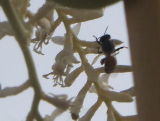 花のアップです。花に黒いものがまとわりついていますがこれらはハチです。