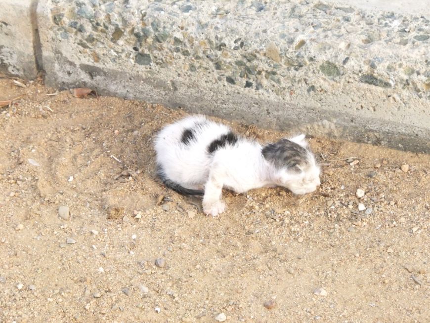 生まれたての子猫。お母さんとはぐれたんでしょう。多分すぐに迎えに来てくれるでしょう。